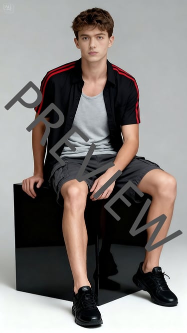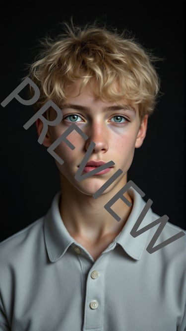 Previews of our artful AI generations of handsome young male models, which are capturing the essence of youthful charm.